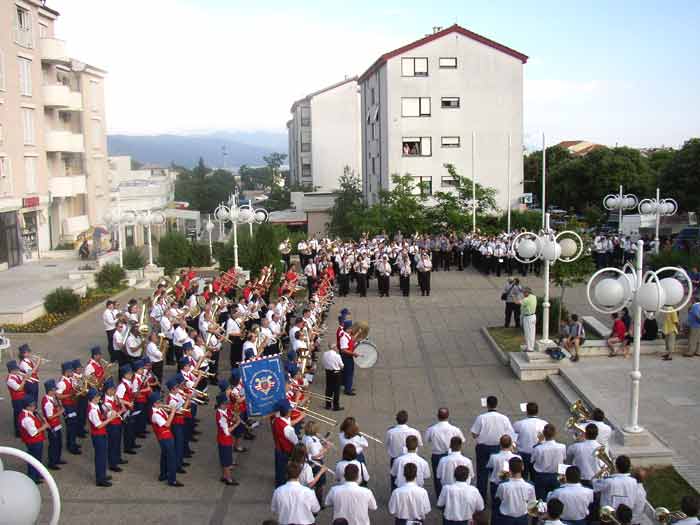 Susret je započeo mimohodom po gradskim ulicama s početkom u 18:00 sati. Nakon toga je u 19:00 sati uslijedilo sviranje dviju zajedničkih skladbi na Trgu Ivana Mažuranića i to "Gardijska" Marka Poklepovića i "Veselo" Ivana Muhvića.