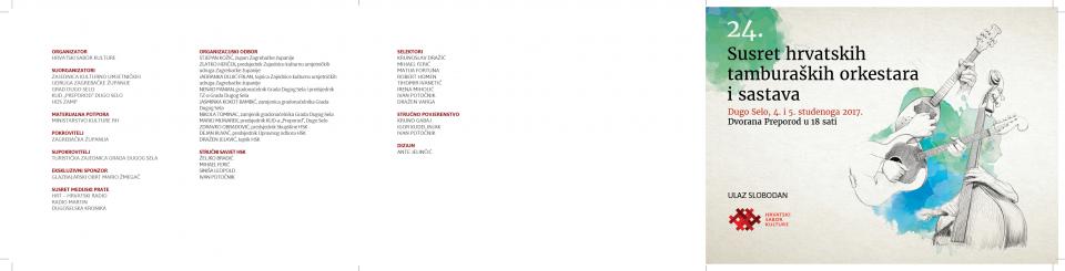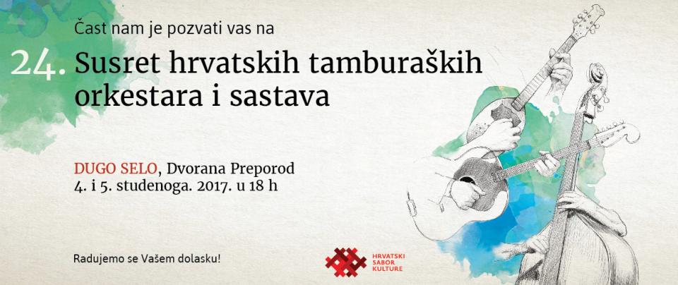 U organizaciji Hrvatskog sabora kulture, suorganizaciji Zajednice kulturno umjetničkih udruga Zagrebačke županije, Grada Dugog Sela, KUD-a „Preporod“ i HDS ZAMP-a, u Dvorani „Preporod“ u Dugom Selu 4. i 5. studenoga 2017. održan je 24. susret hrvatskih tamburaških orkestara i sastava.