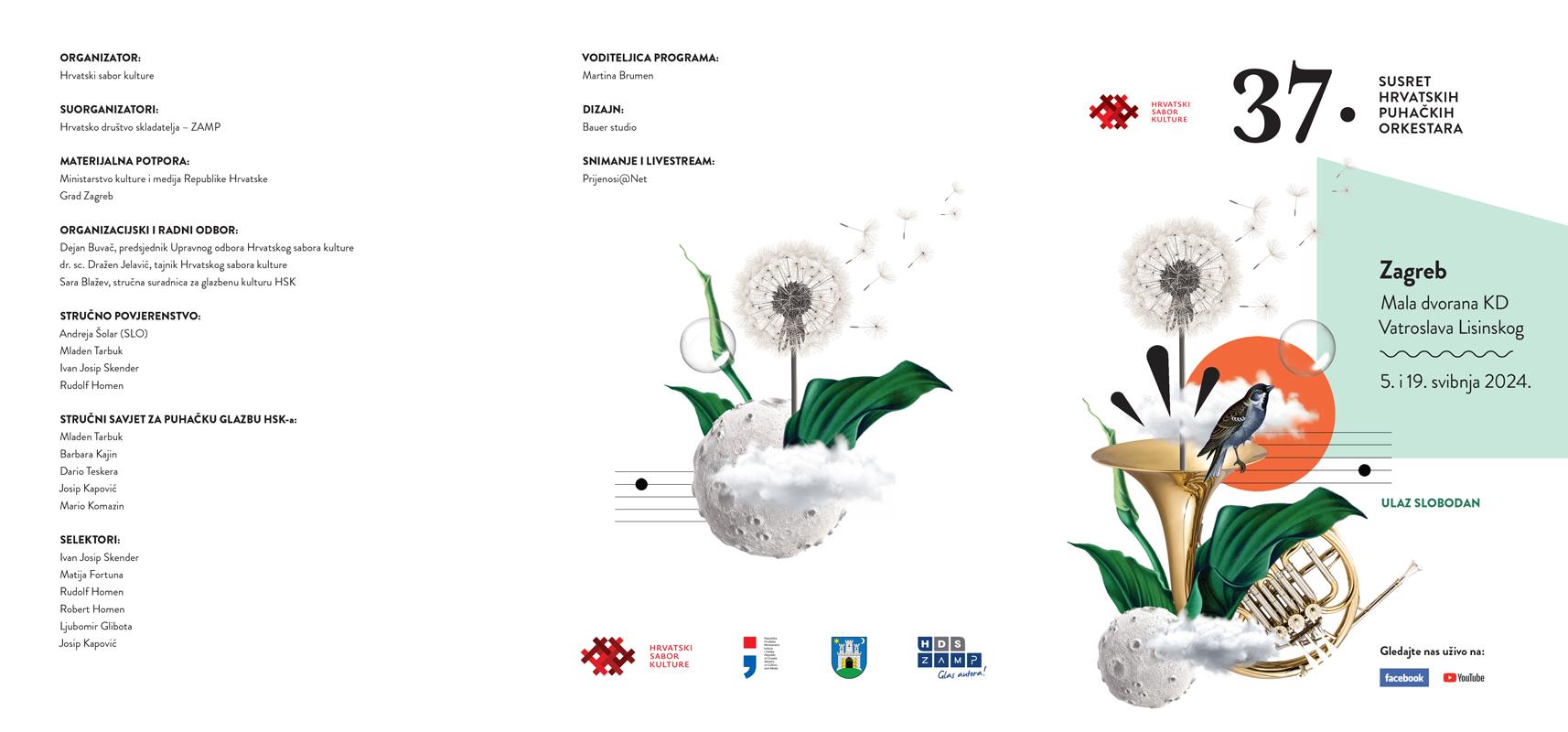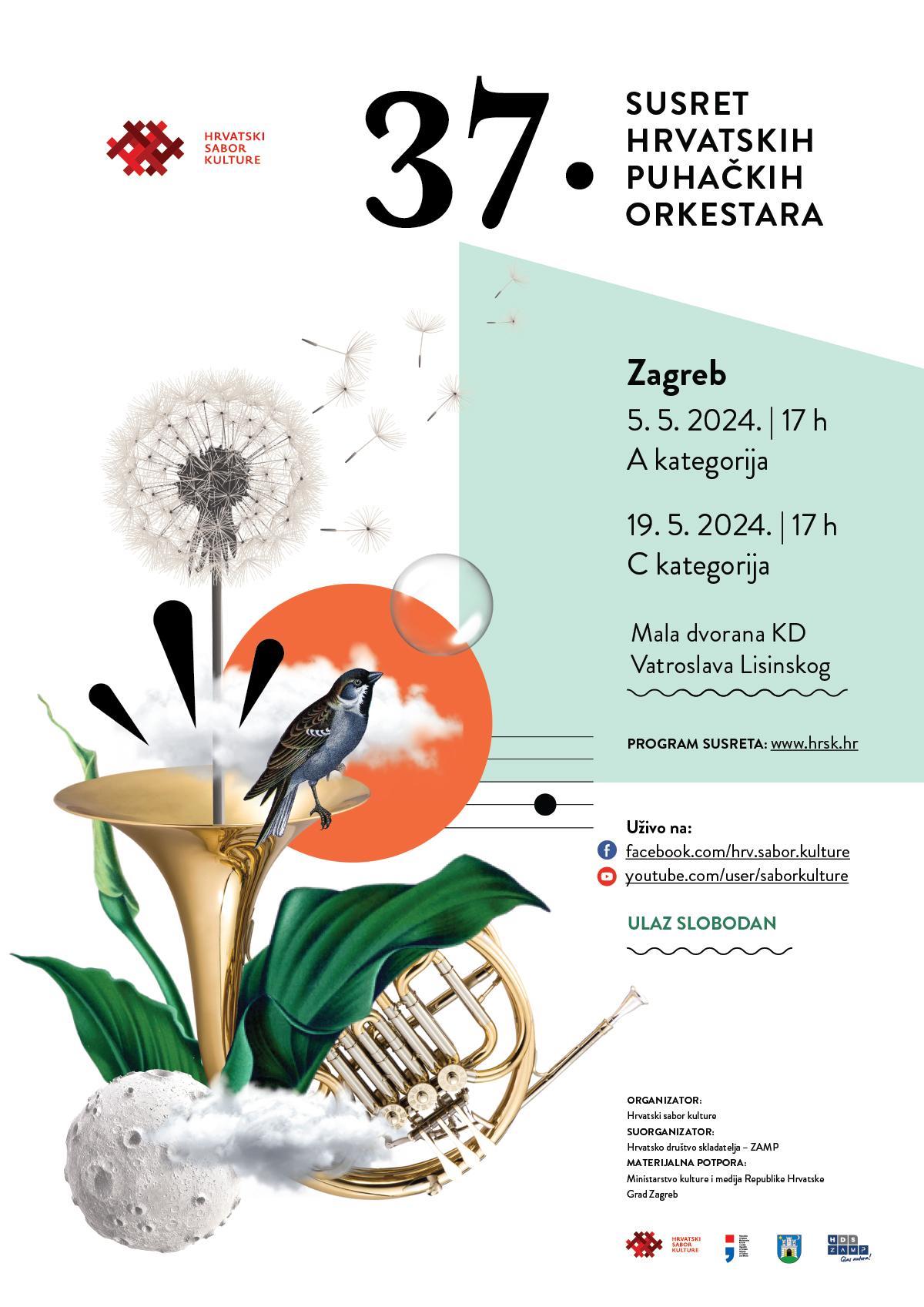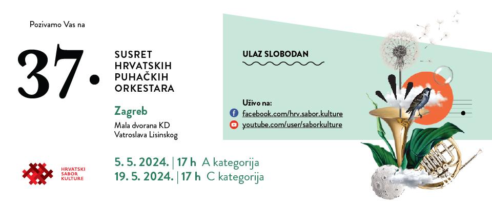 Srdačno Vas pozivamo na 37. Susret hrvatskih puhačkih orkestara koji će 5. i 19. svibnja 2024. godine u Zagrebu okupiti najuspješnije puhačke orkestre iz cijele Hrvatske.