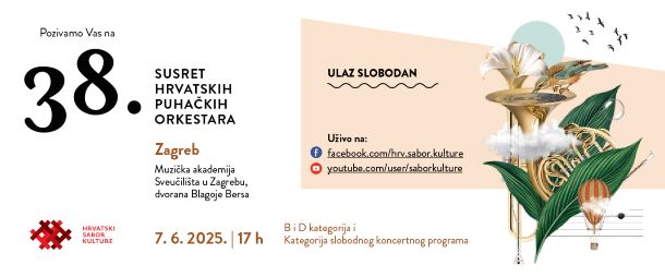 U subotu 7. lipnja, održan je 38. Susret hrvatskih puhačkih orkestara, središnja manifestacija puhačkog amaterizma koja na godišnjoj razini predstavlja najuspješnije puhačke orkestre iz cijele Hrvatske. U bogatom natjecateljskom programu 38. Susreta koji se odvijao u Zagrebu predstavilo se više od 300 glazbenika iz 8 hrvatskih županija.