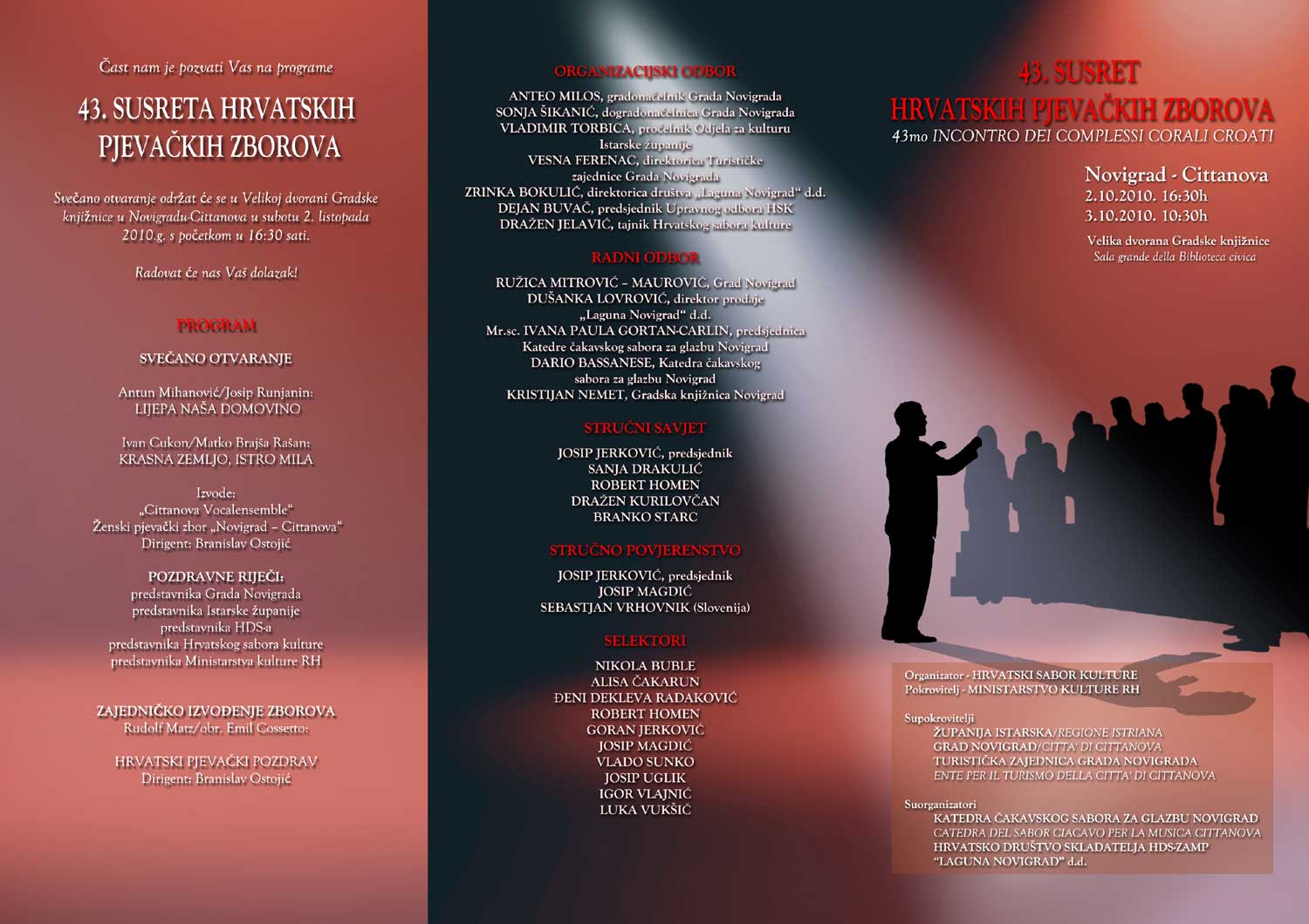43. Susret hrvatskih pjevačkih zborova održao se 2. i 3. listopada 2010. godine u Novigradu - Cittanova. Susretu je prethodilo sveukupno 17 selekcija od toga sedam županijskih smotri održanih u Karlovcu, Križevcima, Zaprešiću, Zaboku, Sv. Mariji, Varaždinu i Čazmi te deset samostalnih koncerata održanih u Osijeku, Rijeci, Pazinu, Petrinji, Valpovu, Splitu, Stankovcima, Šibeniku, Zagrebu te Puli na kojima je nastupilo sveukupno 59 pjevačkih zborova.