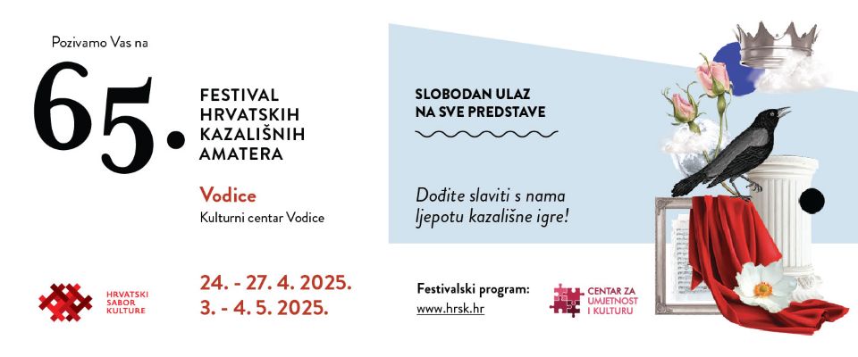 Ovogodišnji jubilarni 65. FESTIVAL HRVATSKIH KAZALIŠNIH AMATERA održava se 24. - 27. travnja te 3. - 4. svibnja u dragim nam Vodicama!