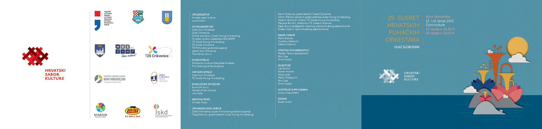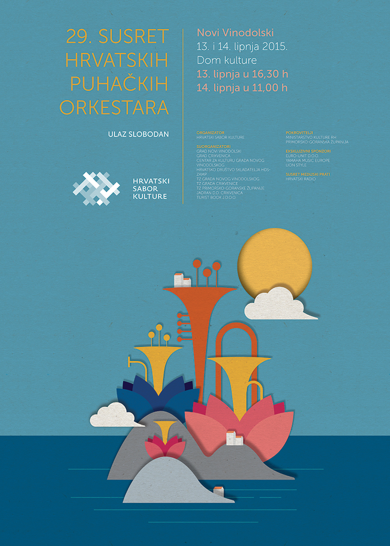 U subotu i nedjelju, 13. i 14. lipnja 2015. u gradu Novom Vinodolskom održan je 29. Susret hrvatskih puhačkih orkestara pod pokroviteljstvom Ministarstva kulture Republike Hrvatske i Županije Primorsko-goranske, a u zajedničkoj organizaciji Hrvatskog sabora kulture, Grada Novog Vinodolskog, Grada Crikvenice, Hrvatskog društva skladatelja HDS-ZAMP, Centra za kulturu grada Novog Vinodolskog, TZ Grada Novog Vinodolskog, TZ Grada Crikvenice, Jadrana d.d. Crikvenica i Turist Booka j.d.o.o.