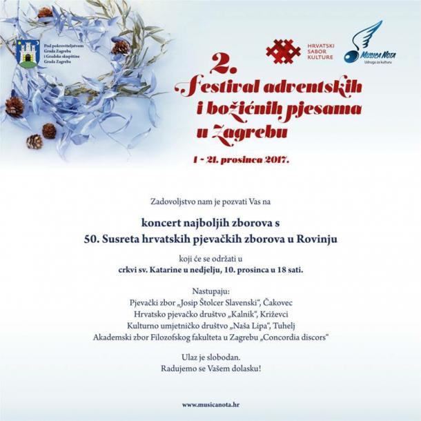 Na poziv Udruge Musica Nota, Hrvatski sabor kulture uključio se u organizaciju i drugog Festivala adventskih i božićnih pjesama u Zagrebu. Zajedničkim je pozivom, u program Festivala uvršten značajan broj zborova i malih vokalnih sastava članova Hrvatskog sabora kulture.