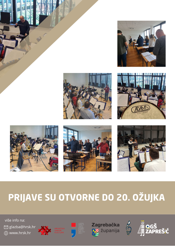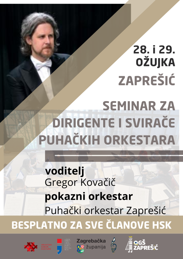 Hrvatski sabor kulture organizira Seminar za dirigente i članove puhačkih orkestara pod vodstvom Gregora Kovačiča dana 28. i 29. ožujka 2026. u Zaprešiću.