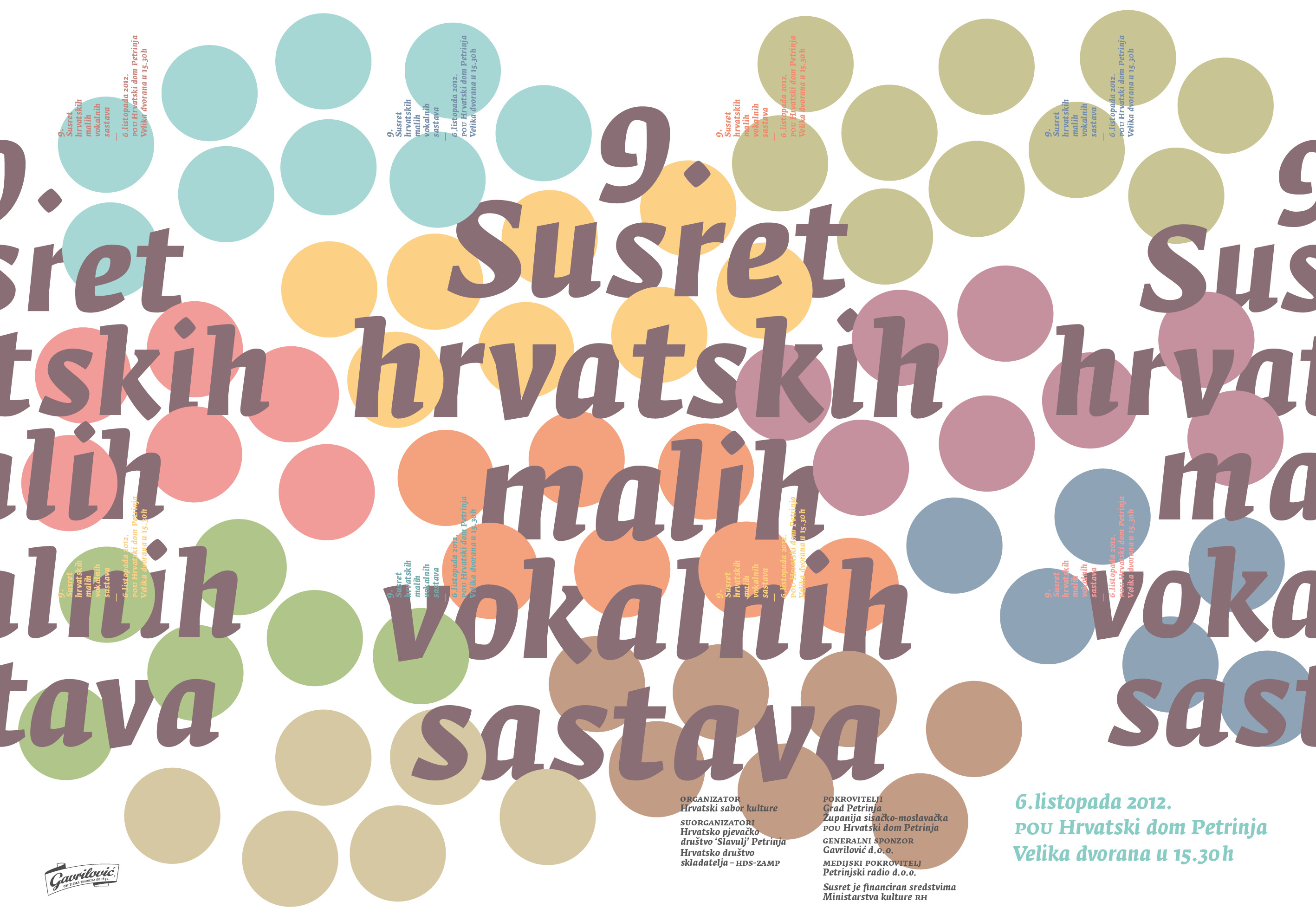 9. Susret hrvatskih malih vokalnih sastava održao se 6. listopada 2012. u velikoj dvorani Pučkog otvorenog učilišta-Hrvatski dom, Petrinja, s početkom u 15:30 sati.