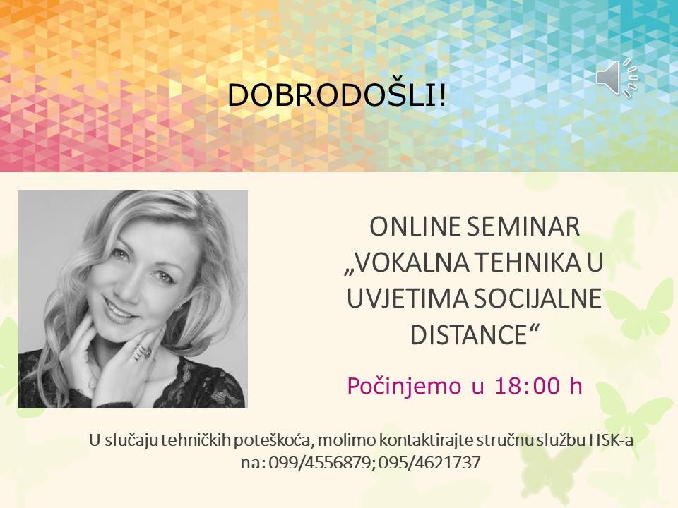 Online glazbeni seminar „Vokalna tehnika u uvjetima socijalne distance“ uspješno je održan od 8. do 11. svibnja 2020. pod vodstvom slovenske sopranistice i vokalne pedagoginje Martine Burger. Obzirom na velik broj zborova i malih vokalnih sastava u RH (u članstvu HSK trenutno je 295 pjevačkih zborova, 135 malih vokalnih sastava i 137 izvornih malih vokalnih sastava) kao i njihov onemogućen rad u doba pandemije koronavirusa, Hrvatski sabor kulture i Martina Burger prilagodili su program seminara zborskim dirigentima i pjevačima i njihovom radu na vokalnoj tehnici u uvjetima socijalne distance ostvarujući ga putem web platforme Zoom (https://zoom.us).